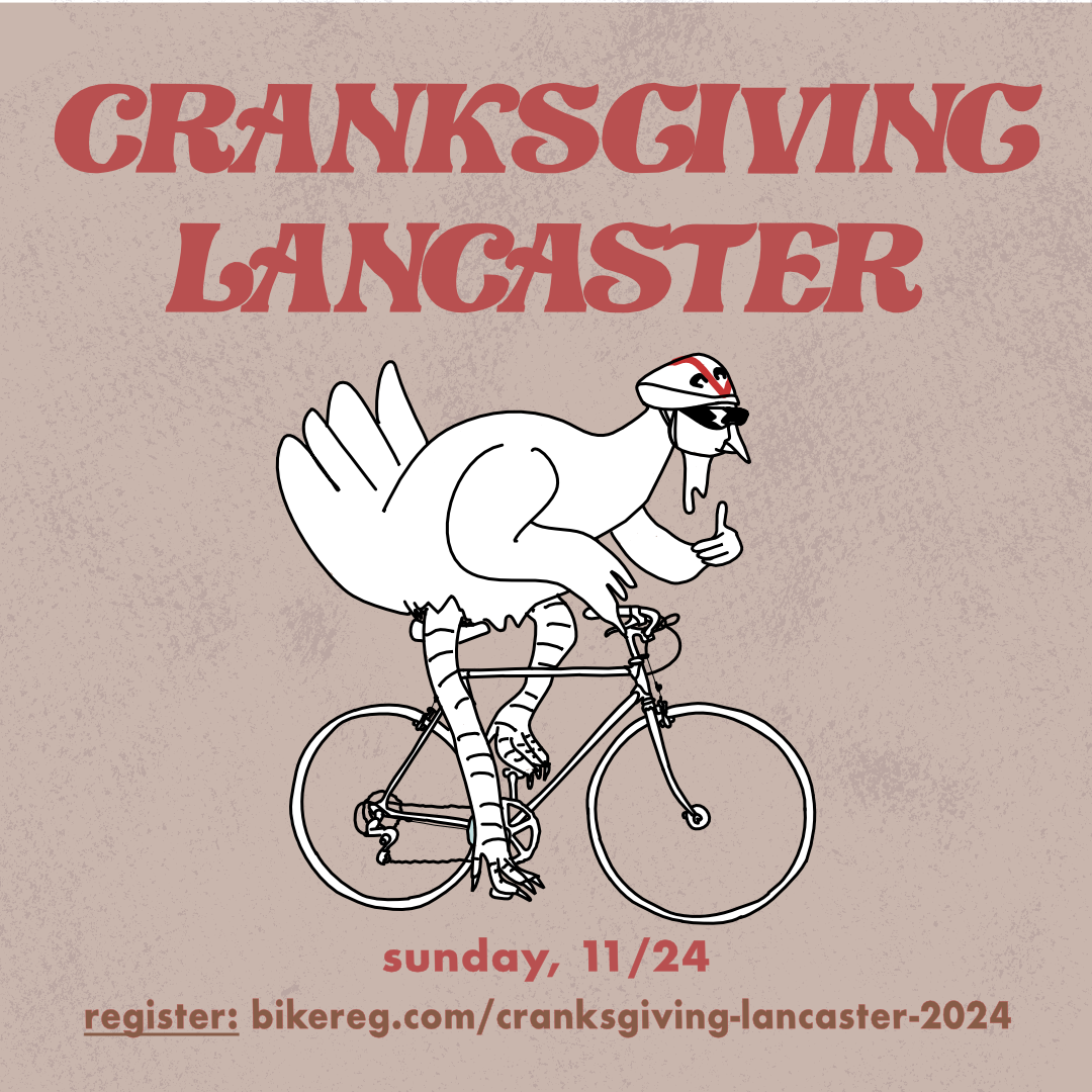 Cranksgiving events such as ours are a means to collect goods for folks in need. While many cities and regions may be hosting their tenth or even twentieth annual event, the city of Lancaster has only hosted Cranksgiving since 2022. Participation has more than doubled since then, with 32 riders for our 3rd annual event in 2024. We’re hoping that our 4th annual Cranksgiving Lancaster will pull up to 50 participants!